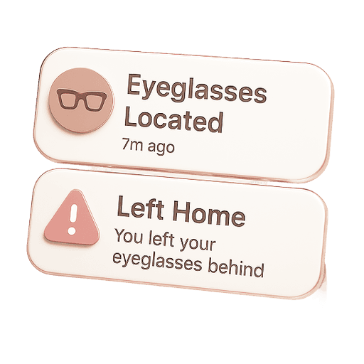 With Bluetooth tracking and smart motion alerts, VisionVault knows when your glasses are missing and shows you their last known location. It can even alert you before you leave home without them, using behavior-based AI predictions.